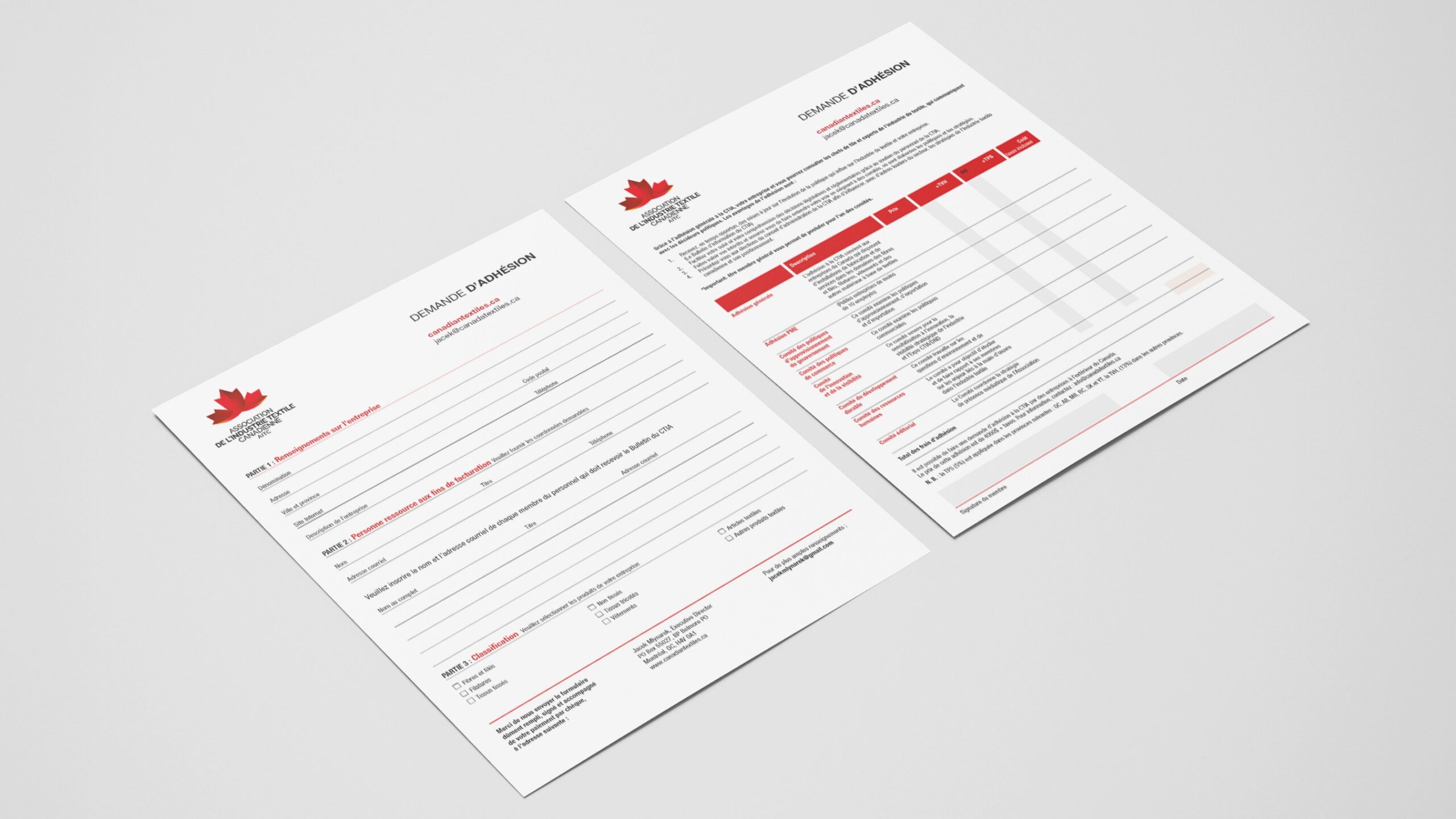 Conception de l’identité visuelle de l’AITC, un organisme dédié à la promotion et au développement du secteur textile au Canada. Fondée en 2009, elle regroupe manufacturiers, transformateurs et utilisateurs de textiles, encourageant l’innovation et le dialogue avec les parties prenantes et les gouvernements.