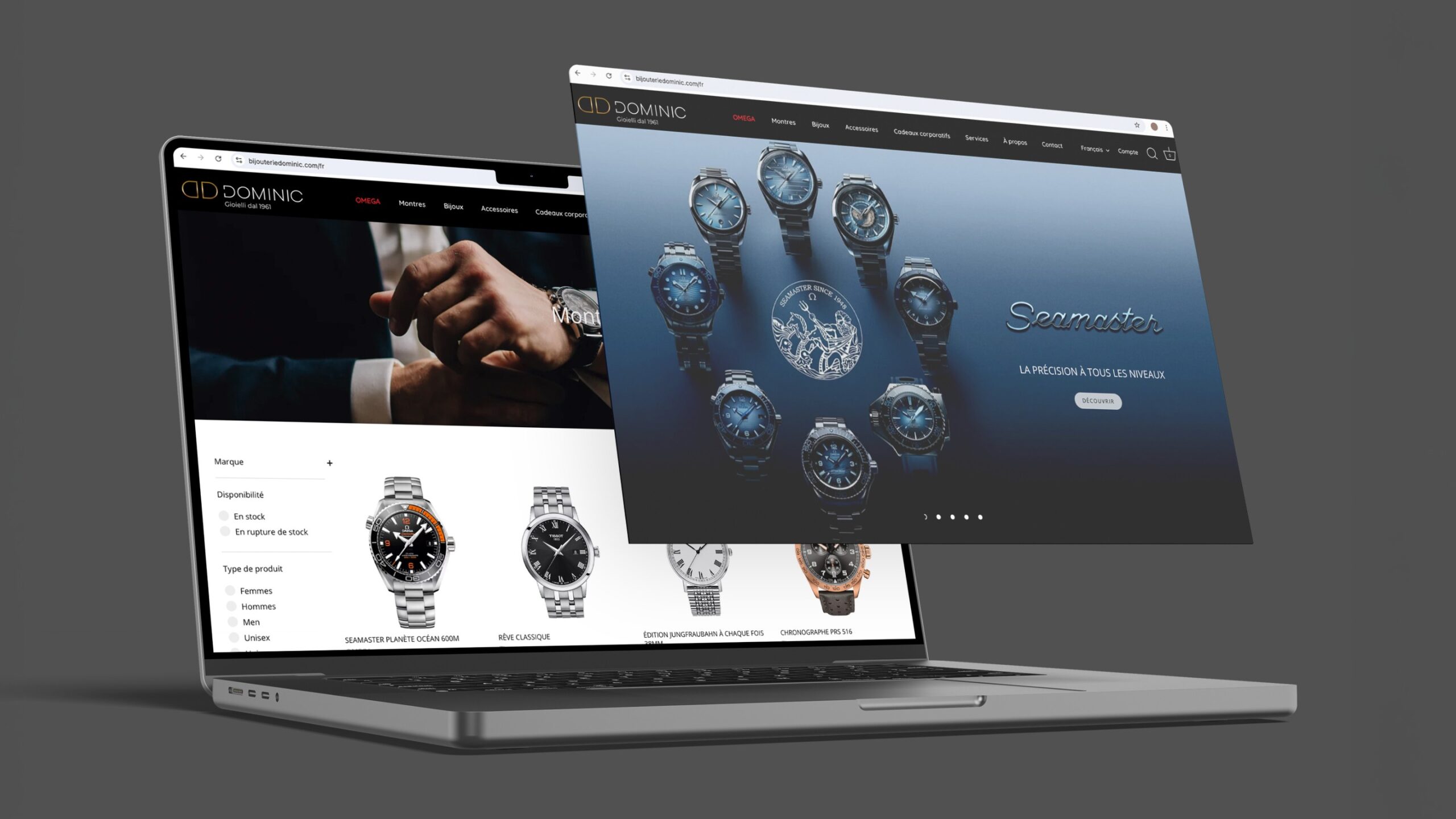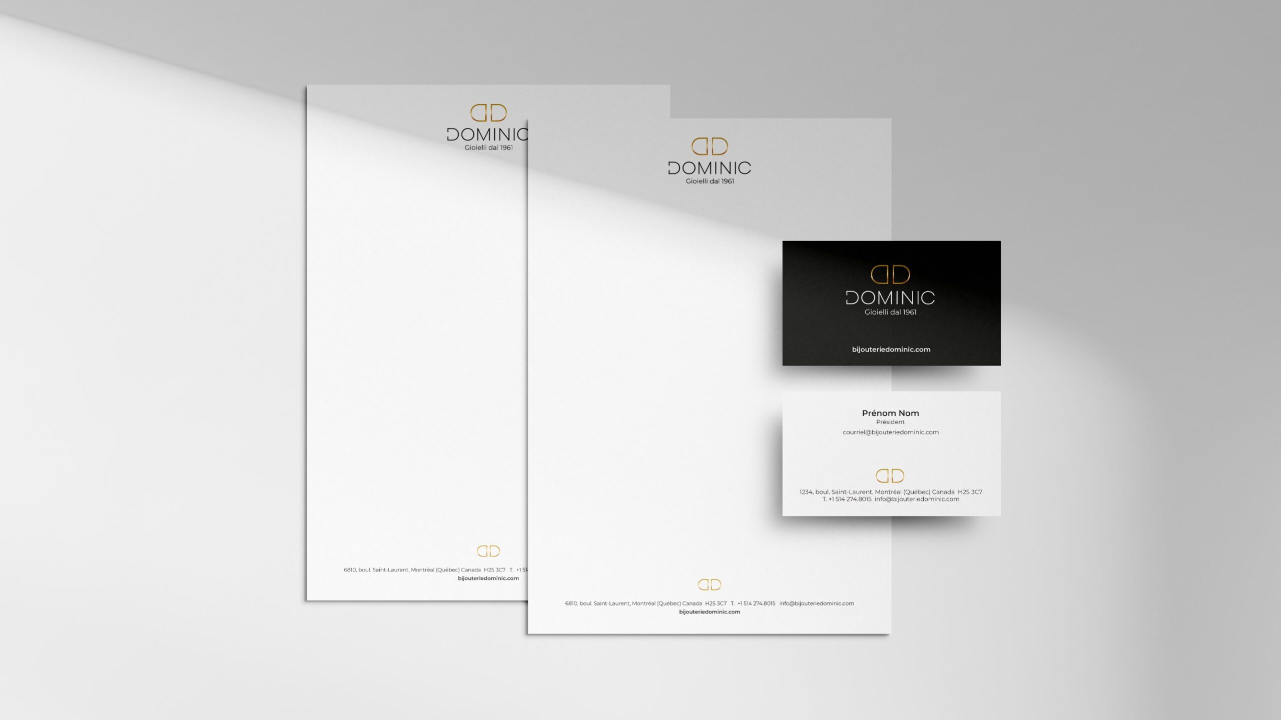 Refonte de l’identité visuelle d’une bijouterie emblématique de Montréal, fondée en 1961 et ancrée au cœur de la Petite Italie. Synonyme d’intégrité et de savoir-faire horloger, la bijouterie Dominic s’est forgée une réputation d’excellence grâce à ses montres et bijoux en or italien 18 carats.