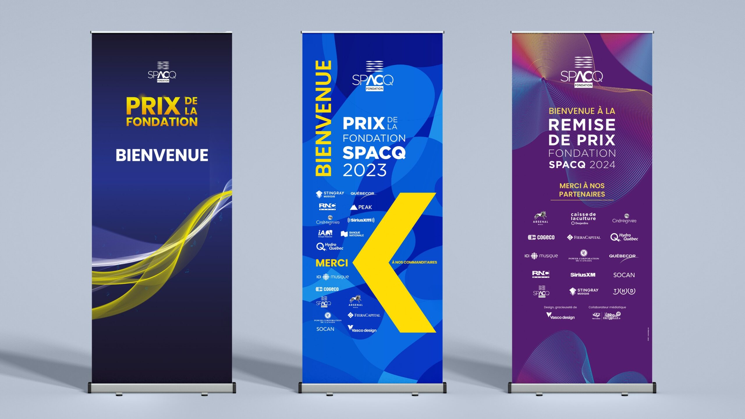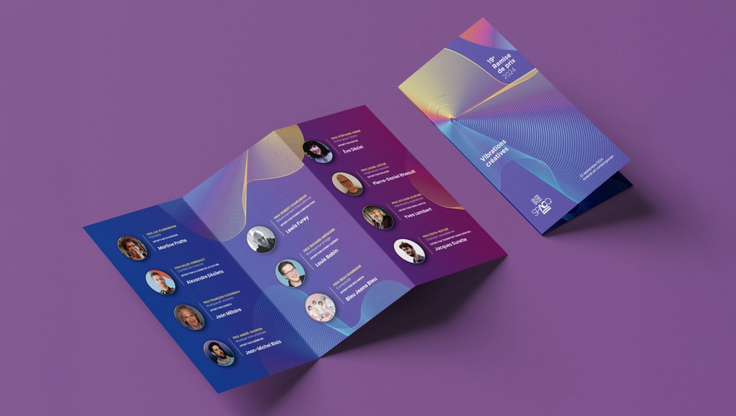 Depuis plusieurs années, nous accompagnons la Fondation dans la création des visuels de son événement annuel de remise de prix. Notre mandat inclut la conception de la thématique, ainsi que la production de divers supports imprimés et numériques, assurant une cohérence qui reflète l’excellence et la valorisation des créateurs de la chanson et de la musique.